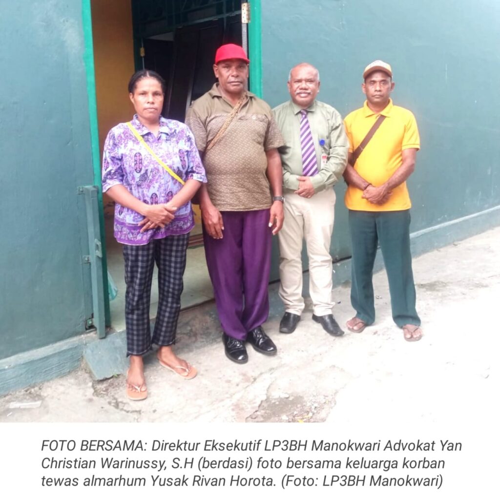 TOP-NEWS.id, MANOKWARI – Direktur Eksekutif Lembaga Penelitian, Pengkajian dan Pengembangan Bantuan Hukum (LP3BH) Manokwari Advokat Yan Christian Warinussy, S.H menyampaikan bahwa perkara dugaan tindak pidana penganiayaan dan atau kecelakaan lalu lintas pada Selasa (1/8/2023) lalu, yang mengakibatkan wafatnya almarhum Yusak Rivan Horota agar diteruskan proses hukumnya sesuai aturan perundangan yang berlaku.