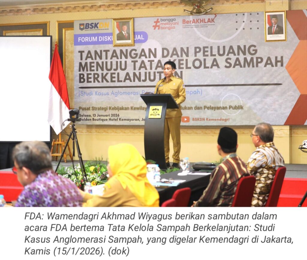 “Peraturan Pemerintah Nomor 27 Tahun 2020 tentang Pengelolaan Sampah Spesifik telah membuka ruang bagi kerja sama antar daerah. Sementara berbagai regulasi tentang kerja sama daerah juga bisa dijadikan payung hukum oleh kita bersama,” ungkap Wamendagri Akhmad Wiyagus di Jakarta, Kamis (15/1/2026).