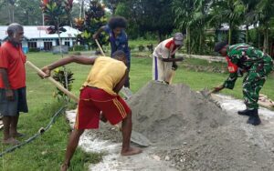 Kompak dan Peduli, Babinsa Numfor Bantu Warga Aduk Campuran Semen