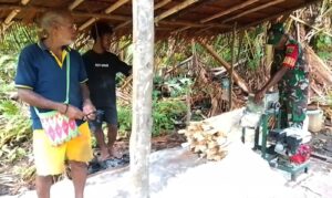 Babinsa juga mengajak warga untuk terus mengelola sumber daya alam secara maksimal. Ia berharap setiap keluarga dapat menjaga kebun sagu sebagai cadangan pangan jangka panjang.