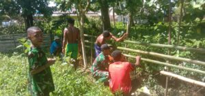 Lindungi Tanaman, Babinsa Warsa Bersama Warga Kampung Amoi Dirikan Pagar