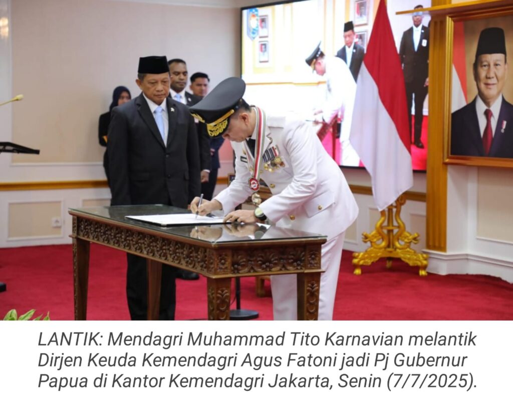 TOP-NEWS.id, JAKARTA – Menteri Dalam Negeri (Mendagri) Muhammad Tito Karnavian akan melantik Agus Fatoni sebagai Penjabat (Pj) Gubernur Papua menggantikan Mayjen TNI (Purn) Ramses Aburaksa Limbong. Pelantikan tersebut, dijadwalkan siang ini pukul 13.00 WIB di Gedung A Kantor Kemendagri, Jakarta, Senin (7/7/2025).
