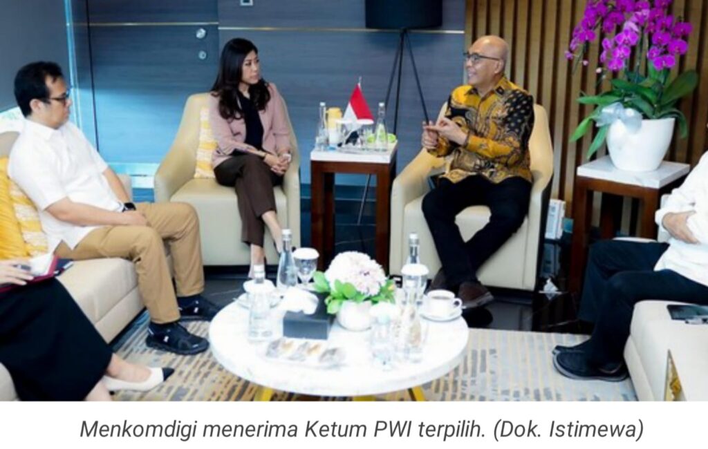Hal itu disampaikan Meutya saat menerima Ketua Umum PWI terpilih Akhmad Munir dan Ketua Dewan Kehormatan (DK) PWI terpilih Atal S. Depari. Meutya didampingi Wamen Komdigi Nezar Patria dan Dirjen Komunikasi Publik dan Media, Fifi Alyda Yaya.