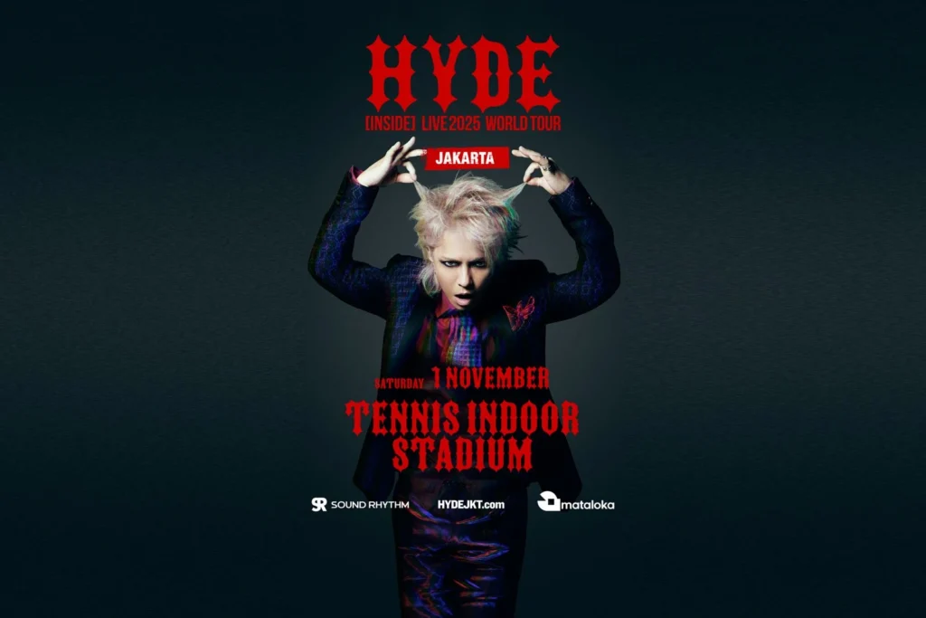 HYDE, vokalis legendaris Jepang dari band L’Arc-en-Ciel, VAMPS, dan THE LAST ROCKSTARS itu akan manggung di Tennis Indoor Senayan, Jakarta pada Sabtu, 1 November 2025.