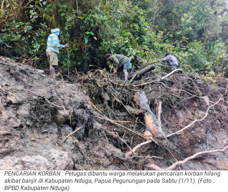 TOP-NEWS.id, JAKARTA - Banjir bandang disertai longsor melanda Kabupaten Nduga, Provinsi Papua Pegunungan pada Sabtu (1/11) pukul 17.00 waktu setempat....