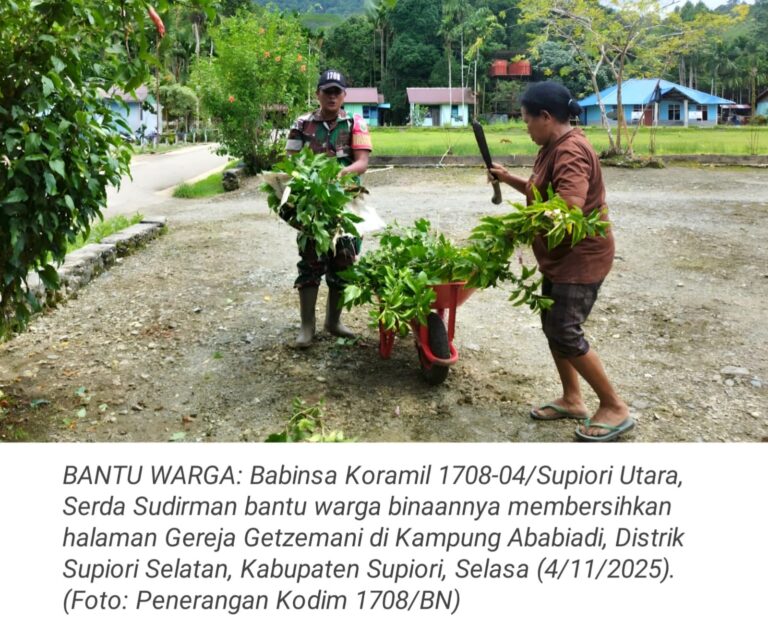 TOP-NEWS.id, SUPIORI - Babinsa Koramil 1708-04/Supiori Utara, Serda Sudirman kembali menunjukkan kepeduliannya terhadap masyarakat di wilayah binaannya dengan ikut bergotong-royong...