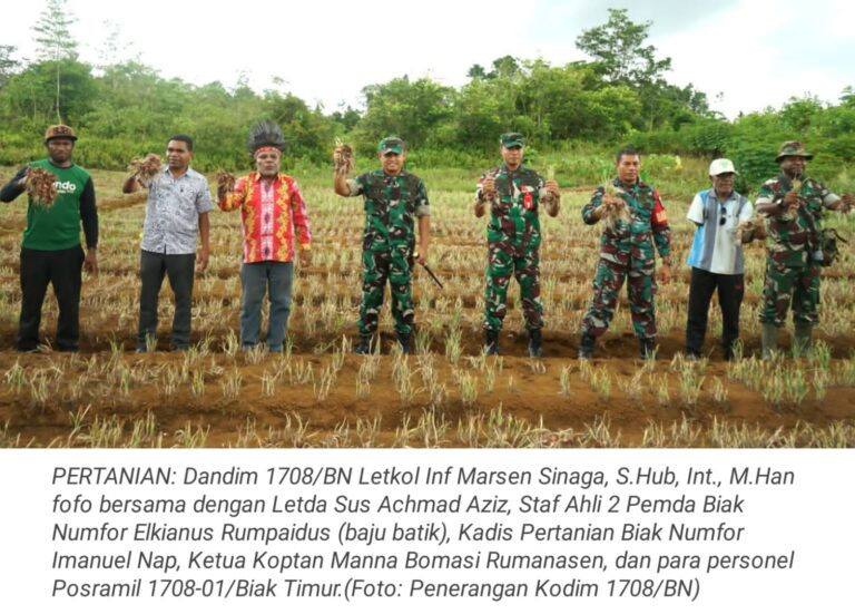 TOP-NEWS.id, BIAK TIMUR - Komandan Kodim 1708/BN Letkol Inf Marsen Sinaga, S.Hub, Int, M.Han menghadiri kegiatan Gerakan Panen Bawang Merah...