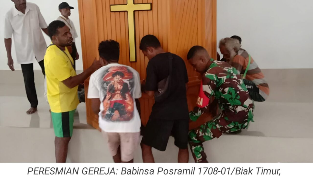 TOP-NEWS.id, BIAK - Babinsa Koramil 1708-01/Biak Kota Kopda Khoirul Mutakin bantu warga binaannya memperbaiki pagar jalan yang sudah rusak di...