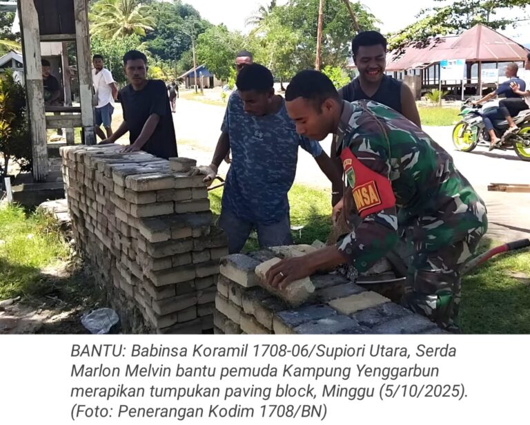 TOP-NEWS.id, SUPIORI - Upaya mempererat kebersamaan dengan warga binaannya, Babinsa Koramil 1708-06/Supiori Utara, Serda Marlon Melvin turun langsung bergotong-royong bersama...