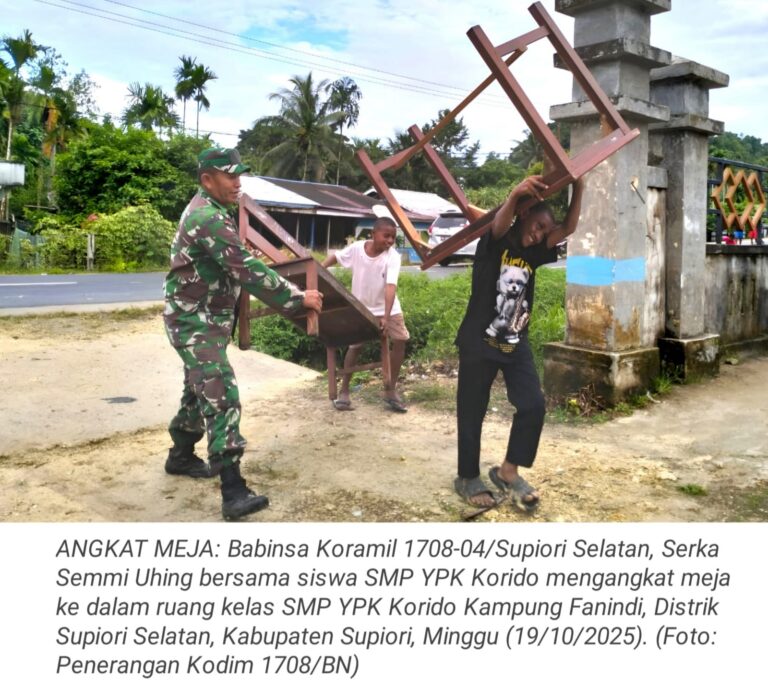 TOP-NEWS.id, SUPIORI - Peduli terhadap dunia pendidikan dan lingkungan sekitar, Babinsa Koramil 1708-04/Supiori Selatan, Serka Semmi Uhing bersama para siswa...