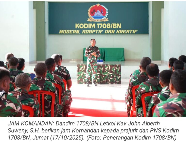 TOP-NEWS.id, BIAK - Prajurit dan PNS Kodim 1708/BN menerima arahan langsung dari Dandim 1708/BN Letkol Kav John Alberth Suweny, S.H,...