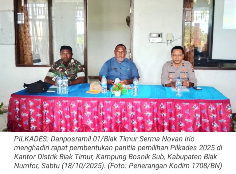 TOP-NEWS.id, BIAK TIMUR - Menjelang pelaksanaan Pemilihan Kepala Kampung (Pilkades) Serentak Tahun 2025, Danposramil 01/Biak Timur Serma Novan Irio menghadiri...
