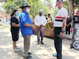 Pdt Albert Yoku (kemeja biru) bersama Danlanud Silas Papare Marsma TNI-AU Budhi Achmadi (bermasker merah putih). (Foto Yolanda Suebu/top-newa.id).