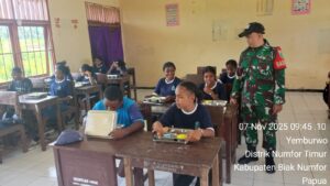 TOP-NEWS.id, YEMBURWO – Babinsa Koramil 1708-05/Numfor, Serda Angga Erlangga turut mendampingi kegiatan pendistribusian Makan Bergizi Gratis (MBG), yang diselenggarakan oleh Satuan Pelayanan Pemenuhan Gizi (SPPG) Yayasan Phinisi Biak Dapur Cahaya Numfor Indonesia.