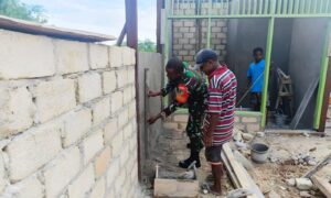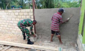 Peduli dan Sigap, Babinsa Biak Kota Bantu Plester Tembok Rumah Warga