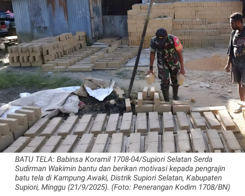Peduli Ekonomi Rakyat, Babinsa Koramil Supiori Selatan Bantu Pengarjin Batu Tela