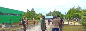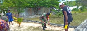 TOP-NEWS.id, BIAK TIMUR – Babinsa Koramil 1708-01/Biak Kota, Posramil Biak Timur, Serda Melyanus Ubjaan membantu warga dan petugas kesehatan melaksanakan kebersihan halaman Puskesmas Bosnik di Kampung Bosnik Sub, Distrik Biak Timur, Kabupaten Biak Numfor, Papua, Rabu (1/4/2026).