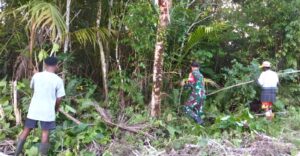 TOP-NEWS.id, NUMFOR – Babinsa Koramil 1708-05/Numfor, Serda Angga Airlangga bersama warga lakukan pembersihan bahu di sepanjang jalan Kampung Pomdori Sub, Distrik Numfor Barat, Kabupaten Biak Numfor, Papua, Kamis (6/11/2025).