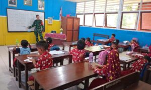 Peduli Pendidikan Anak, Babinsa Biak Kota Bantu Mengajar di SDN Angkasa