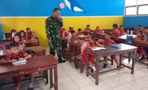 TOP-NEWS.id, BIAK – Babinsa Koramil 1708-01/Biak Kota, Serka Hadi Purnomo meluangkan waktunya membantu kegiatan belajar-mengajar di SD Negeri Angkasa, Distrik Samofa, Kabupaten Biak Numfor, Papua, Jumat (12/9/2025).