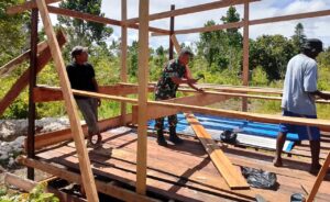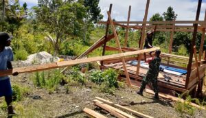 Peduli Warga, Babinsa Biak Timur Bantu Bangun Pondok Persinggahan