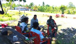 Sertu Nahor Awete komunikasi terus dengan warga di wilayah binaannya dan mengajak agar selalu menjaga keamanan kampung. (Foto: Penerangan Kodim 1708/BN)