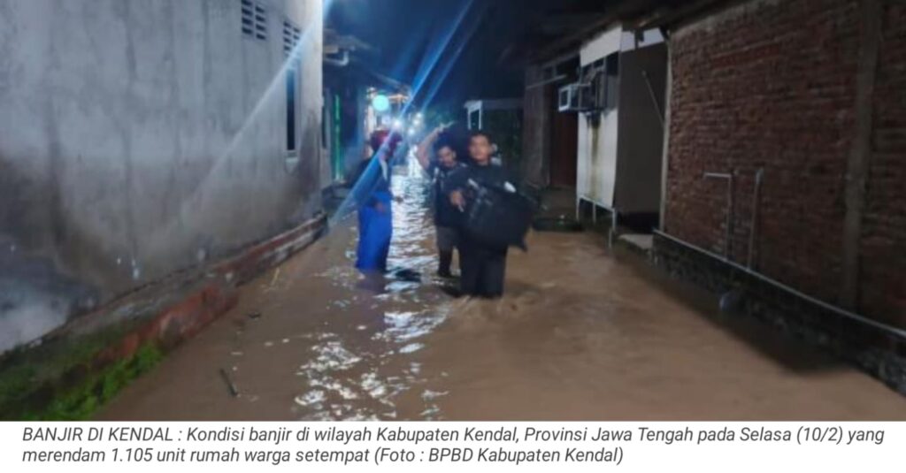 Peristiwa serupa juga terjadi di Kabupaten Kendal, Selasa (10/2). Hujan lebat menyebabkan banjir yang merendam 11 desa. Tercatat sebanyak 805 kepala keluarga dan 1.105 unit rumah terdampak banjir.
