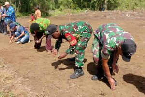 TOP-NEWS.id, BIAK TIMUR – Upaya meningkatkan ketahanan pangan terus dilakukan Babinsa di wilayah Kabupaten Biak Numfor. Seperti yang dilakukan Babinsa Posramil 1708-01/Biak Timur, Serka Yakonias Ratuhanrasa dan Kopka Absalom Dimara mendampingi penanaman bibit padi gogo bersama Kelompok Tani (Koptan) Adibai dan Warbinor di Kampung Rimba Jaya, Distrik Biak Timur, Kabupaten Biak Numfor, Papua, Sabtu (28/6/2025).