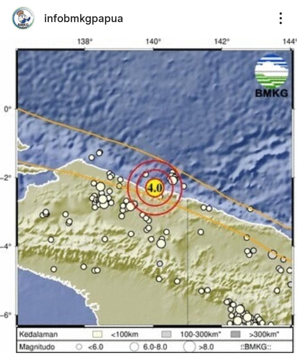 Pusat Gempa M4.1 di Jayapura Berada di Laut 35 Km Barat Laut Genyem
