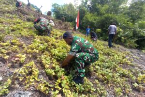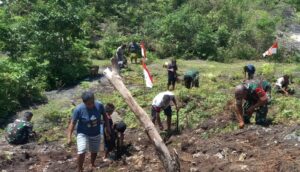 Sambut HUT Ke-80 RI, Personel Posramil Biak Timur dan Warga Lakukan Penanaman Pohon