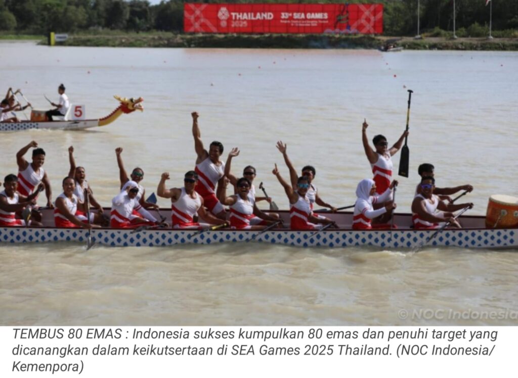 TOP-NEWS.id, BANGKOK – Indonesia berhasil mencapai target 80 emas dalam SEA Games 2025 Thailand. Target emas ini tercapai setelah tim putri kabaddi beranggotakan Ni Komang Tri Meiyoni, Yuni Amirta, Ni Luh Happy Restia, Oktavia Riska Della dan Ni Kadek Ari Wartini sukses mengalahkan Malaysia 24-23 dan berhasil naik podium teratas di nomor women three stars finals, pada Kamis petang (18/12).
