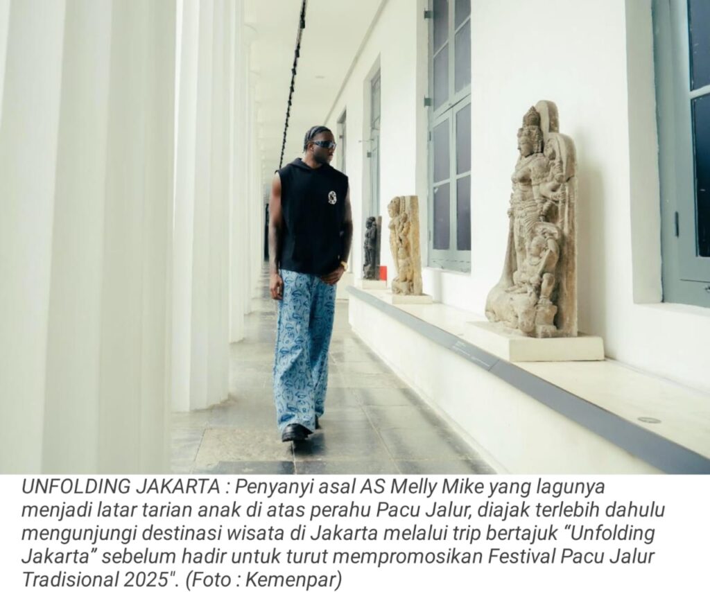 TOP-NEWS.id, JAKARTA – Sebelum hadir untuk turut mempromosikan Festival Pacu Jalur Tradisional 2025″ di Teluk Kuantan, Kuantan Singingi, Riau, rapper dan penyanyi asal AS Melly Mike yang lagunya menjadi latar tarian anak di atas perahu Pacu Jalur, diajak terlebih dahulu mengunjungi destinasi wisata di Jakarta melalui trip bertajuk “Unfolding Jakarta”.