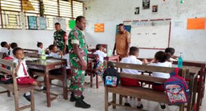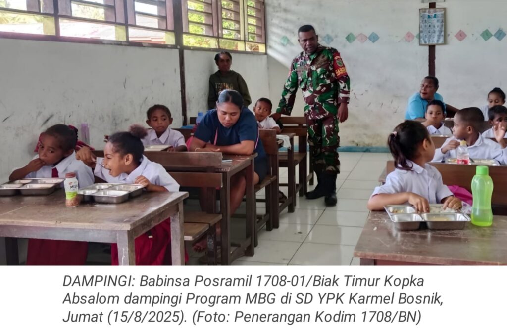 TOP-NEWS.id, BIAK TIMUR – Babinsa Posramil 1708-01/Biak Timur menunjukkan kepedulian nyata terhadap kesehatan generasi muda dengan aktif mendampingi kegiatan pembagian Makan Bergizi Gratis (MBG) bagi anak-anak sekolah di Distrik Biak Timur, Kabupaten Biak Numfor, Papua, Jumat (15/8/2025).