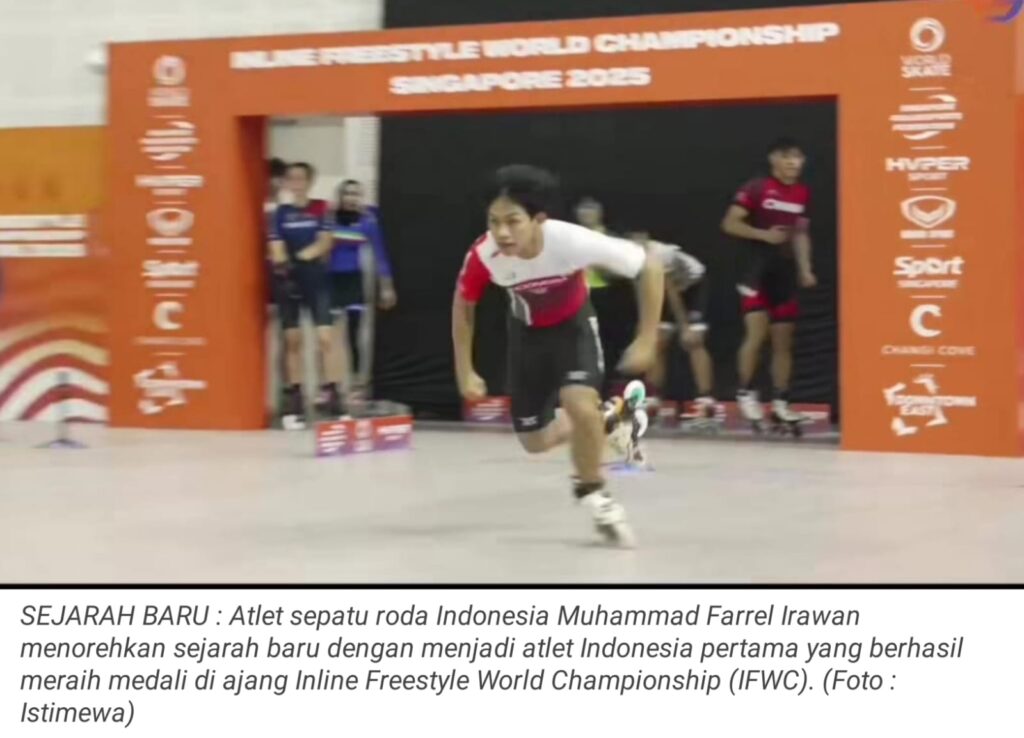 TOP-NEWS.id, SINGAPURA – Penantian panjang Merah Putih untuk melihat atletnya berdiri di podium tertinggi sepatu roda dunia akhirnya tuntas. Muhammad Farrel Irawan mencatatkan namanya dalam tinta emas sejarah olahraga nasional dengan menjadi atlet Indonesia pertama yang berhasil meraih medali di ajang Inline Freestyle World Championship (IFWC).