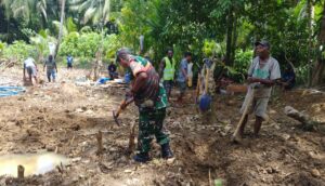 Semangat Gotong-Royong, Babinsa Bersama Warga Kerja Sama Gali Pondasi Tiang Pemancar