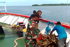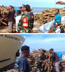 Semangat Kebersamaan, Babinsa Bantu Jemaat Angkut Kayu di Pelabuhan Numfor