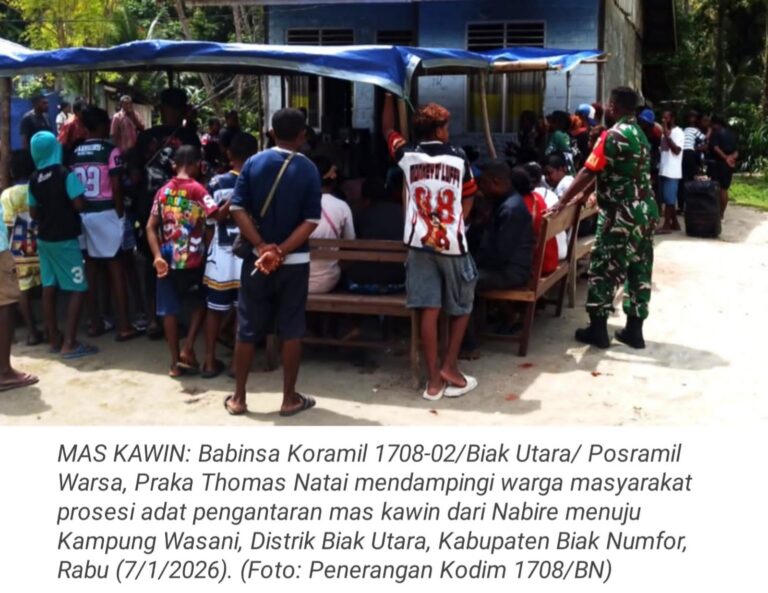 TOP-NEWS.id, WARSA - Babinsa Koramil 1708-02/Biak Utara/ Posramil Warsa, Praka Thomas Natai melaksanakan pendampingan terhadap warga masyarakat dalam prosesi adat...