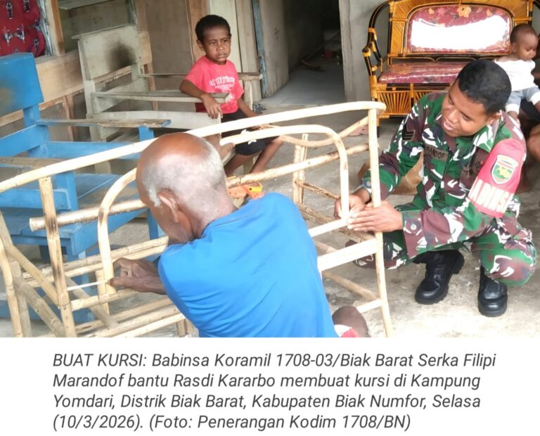 TOP-NEWS.id, BIAK BARAT - Wujud kepedulian dan kedekatan dengan masyarakat, Babinsa Koramil 1708-03/Biak Barat, Serka James Bonsapia turun langsung membantu...