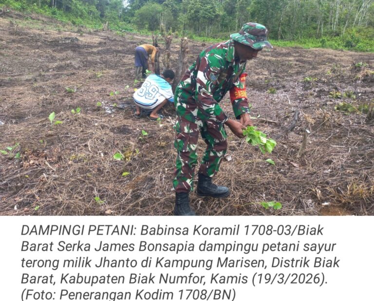 TOP-NEWS.id, BIAK BARAT - Wujud kepedulian terhadap ketahanan pangan di wilayah binaan, Babinsa Koramil 1708-03/Biak Barat Serka James Bonsapia melaksanakan...
