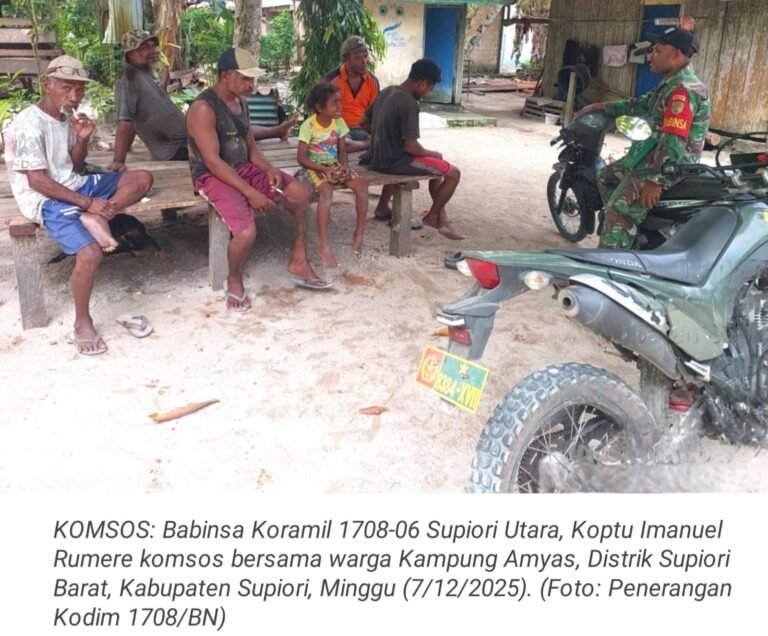 TOP-NEWS.id, SUPIORI BARAT - Babinsa Koramil 1708-06/Supiori Utara, Koptu Imanuel Rumere melaksanakan kegiatan komunikasi sosial (komsos) bersama warga Kampung Amyas,...