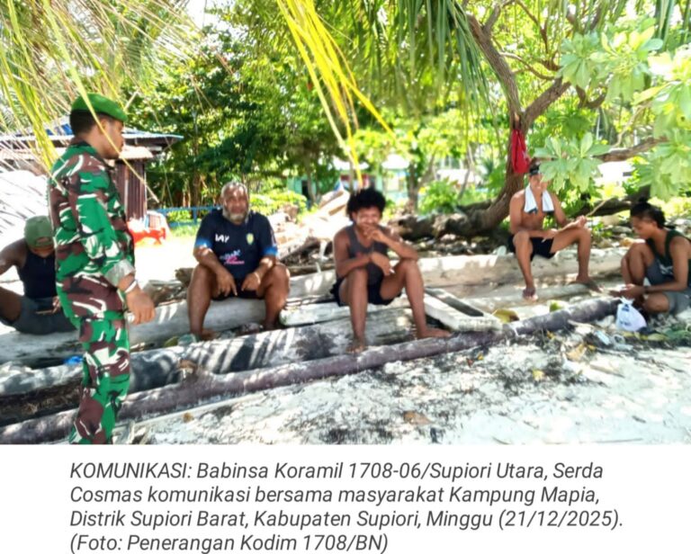 TOP-NEWS.id, SUPIORI - Babinsa Koramil 1708-06/Supiori Utara, Serda Cosmas Yehuda komunikasi sosial (komsos) bersama masyarakat Kampung Mapia, Distrik Supiori Barat,...
