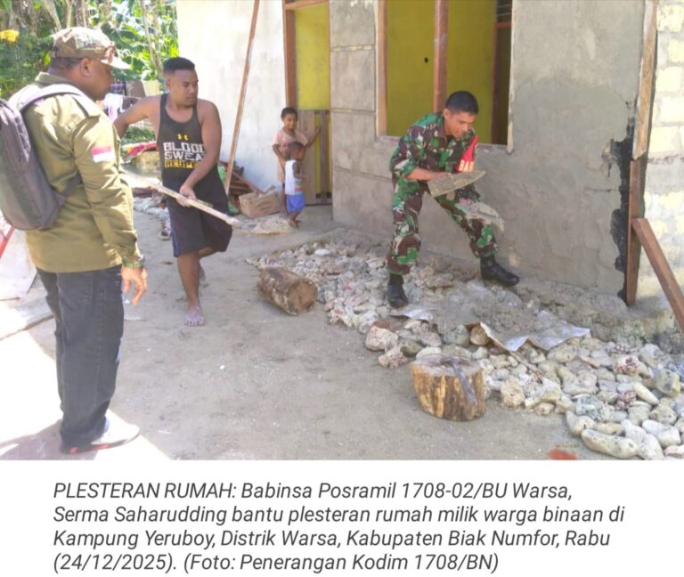TOP-NEWS.id, WARSA - Wujud kepedulian dan semangat kebersamaan kembali ditunjukkan oleh Babinsa Posramil 1708-02/Biak Utara-Warsa, Serda Ikbal Hobrow, yang turun...