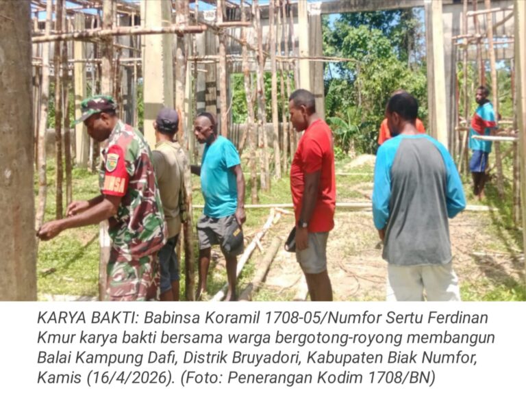 TOP-NEWS.id, BIAK NUMFOR - Upaya mempererat kemanunggalan TNI dengan rakyat, Babinsa Koramil 1708-05/Numfor Sertu Ferdinan Kmur melaksanakan kegiatan karya bakti...