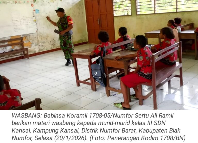 TOP-NEWS.id, NUMFOR - Babinsa Koramil 1708-05/Numfor Sertu Ali Ramli melaksanakan kegiatan wawasan kebangsaan (wasbang) kepada murid kelas III SD Negeri...