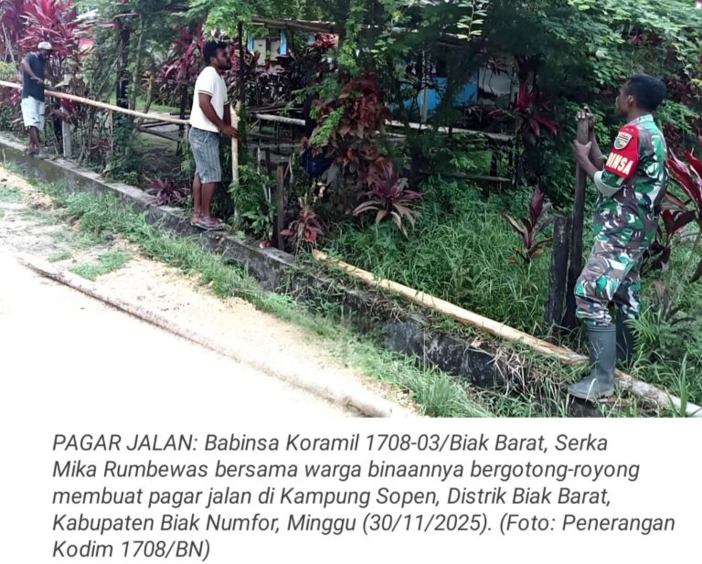 TOP-NEWS.id, BIAK BARAT - Babinsa Koramil 1708-03/Biak Barat, Serka Mika Rumbewas turut berperan aktif membantu warga binaannya dalam kegiatan gotong-royong...