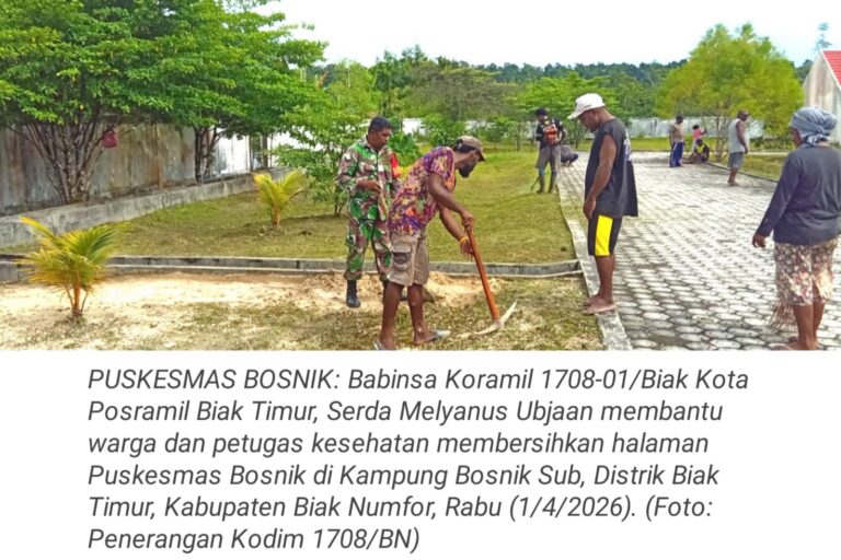 TOP-NEWS.id, BIAK TIMUR - Babinsa Koramil 1708-01/Biak Kota, Posramil Biak Timur, Serda Melyanus Ubjaan membantu warga dan petugas kesehatan melaksanakan...
