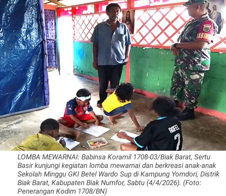TOP-NEWS.id, BIAK BARAT - Babinsa Koramil 1708-03/Biak Barat, Sertu Basir hadir dalam kegiatan lomba mewarnai dan berkreasi anak-anak Sekolah Minggu...