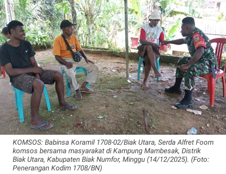 TOP-NEWS.id, BIAK UTARA - Babinsa Koramil 1708-02/Biak Utara, Serda Alfret Foom melaksanakan kegiatan komunikasi sosial (komsos) bersama masyarakat di Kampung...