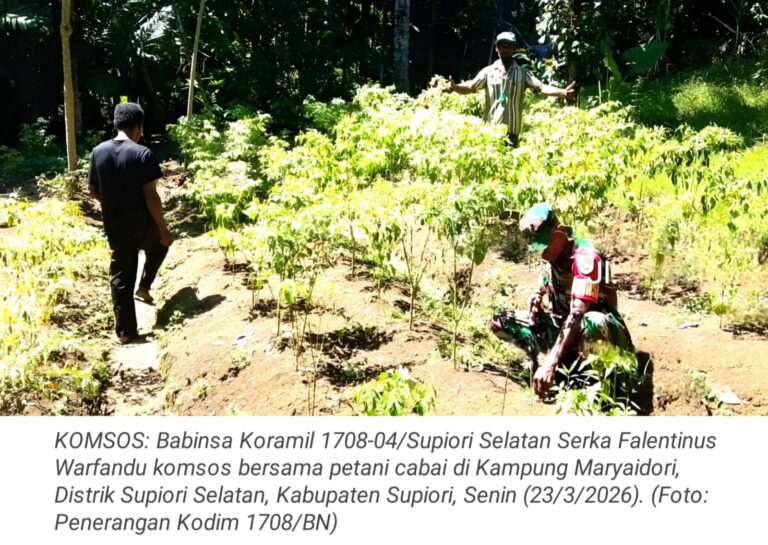 TOP-NEWS.id, SUPIORI - Upaya mempererat hubungan dengan masyarakat, Babinsa Koramil 1708-04/Supiori Selatan Serka Falentinus Warfandu melaksanakan komunikasi sosial (komsos) bersama...