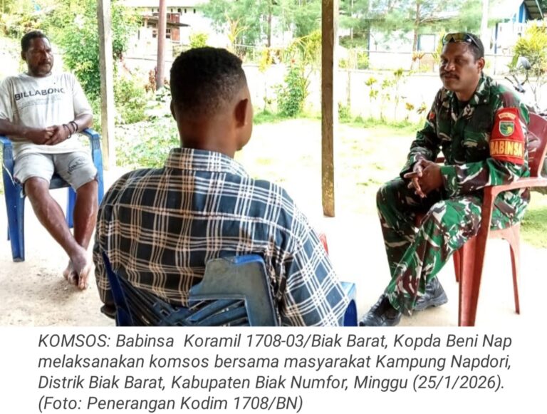 TOP-NEWS.id, BIAK BARAT - Babinsa Koramil 1708-03/Biak Barat Sertu Melkianus Nap melaksanakan komunikasi sosial (komsos) dengan Mesak Kararbo, warga Kampung...